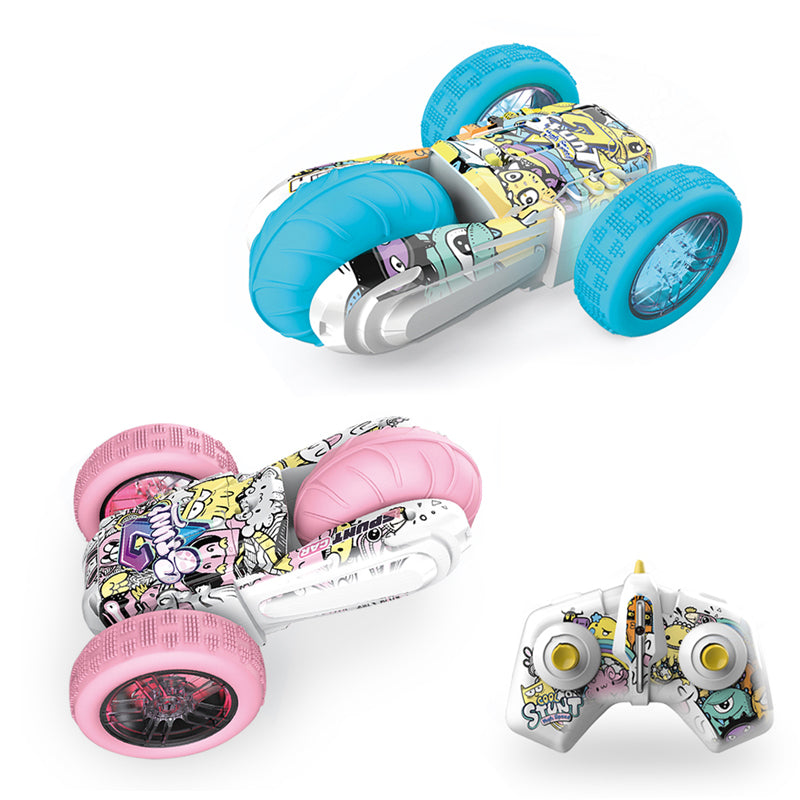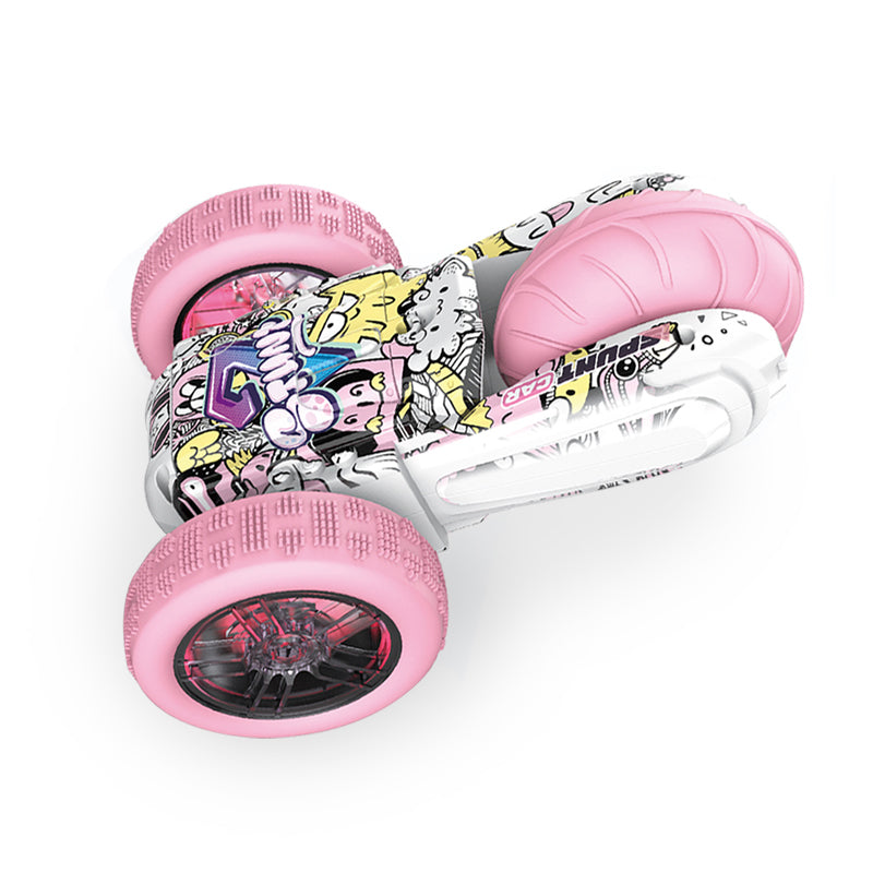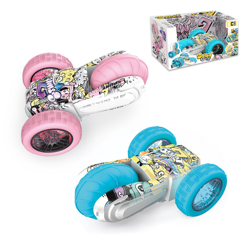 2.4G遥控UV特技三轮车/带灯光,车身4*AAA无包电,遥控器2*AAA无包电,涂鸦浅粉蓝二色混装