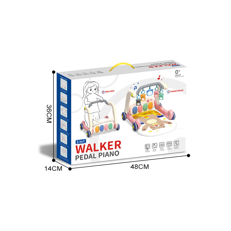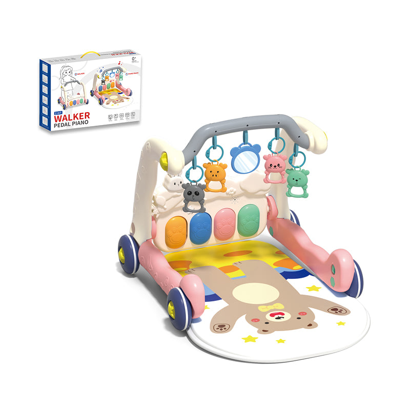 二合一学步车脚踏琴健身毯/3*AA无包电,粉色